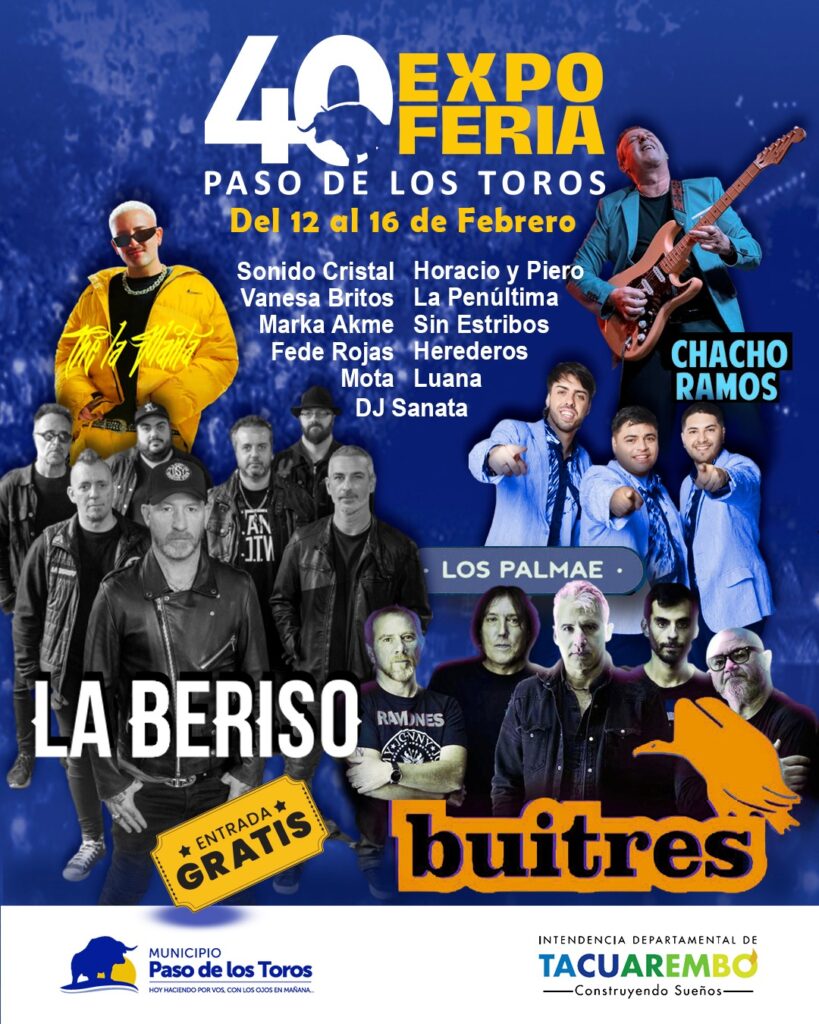 El evento se llevará a cabo del 12 al 16 de febrero , con entrada gratuita para todo el público. Actuarán entre otros, Chacho Ramos, Buitres, The La Planta y desde la República Argentina, llegará la banda popular La Beriso, entre otros.